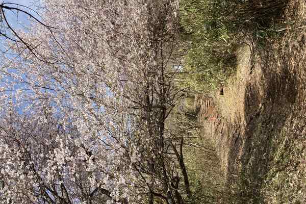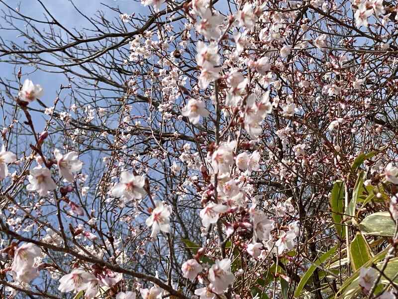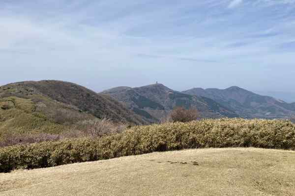 尾根の左側には駒ガ岳や芦ノ湖、右側には富士山、尾根道には満開のマメザクラ。