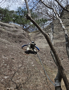 終了間際のみチョットルート取りを考えさせられる、上半分は下降を考えるとロープの長さが足りなくそれほど難しくも見えないので割愛させていただいた