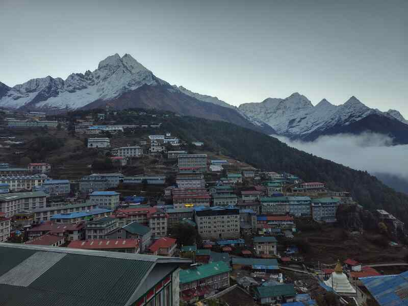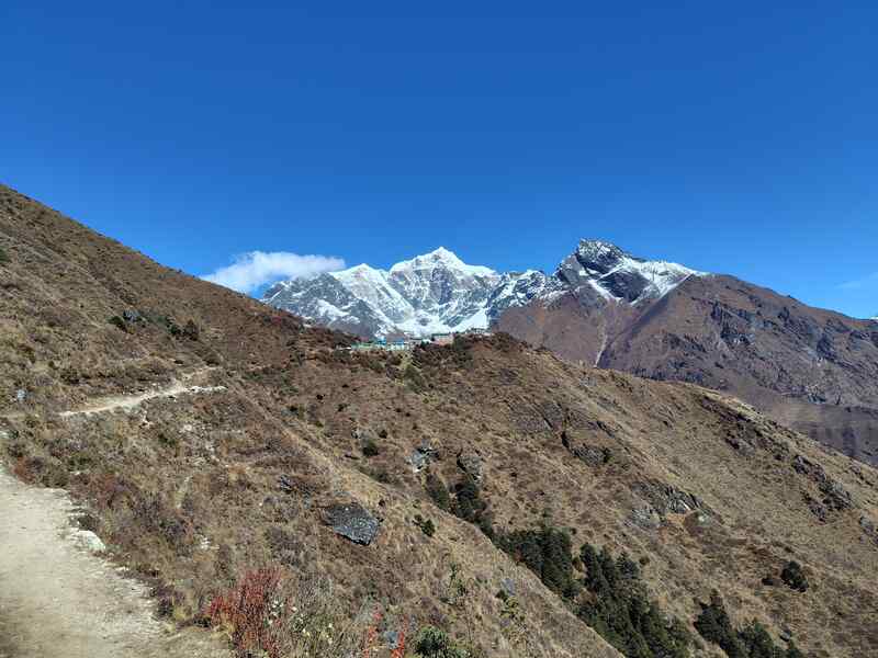 高度順応のため、ホテルエベレストビューまでハイキング。遠くにエベレストが見える。