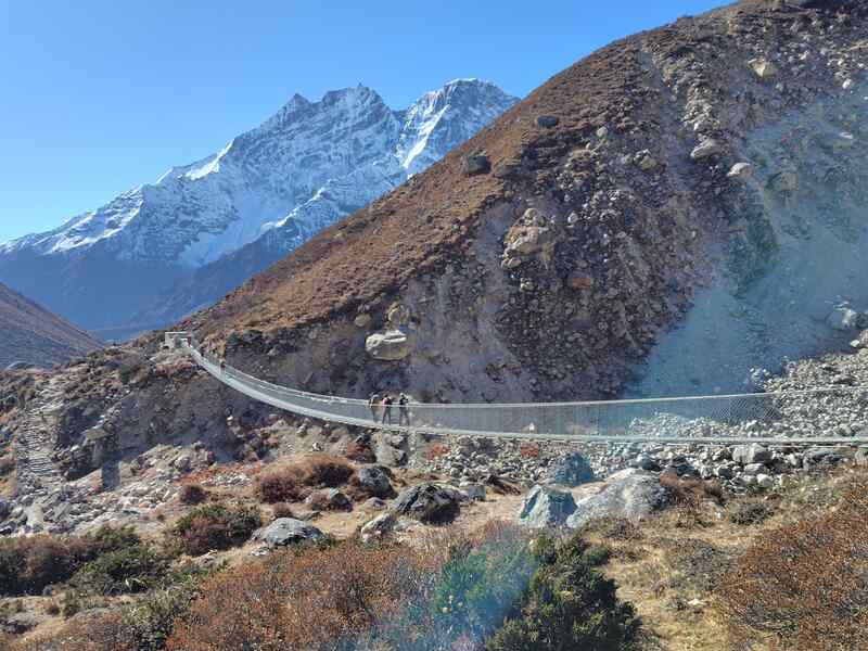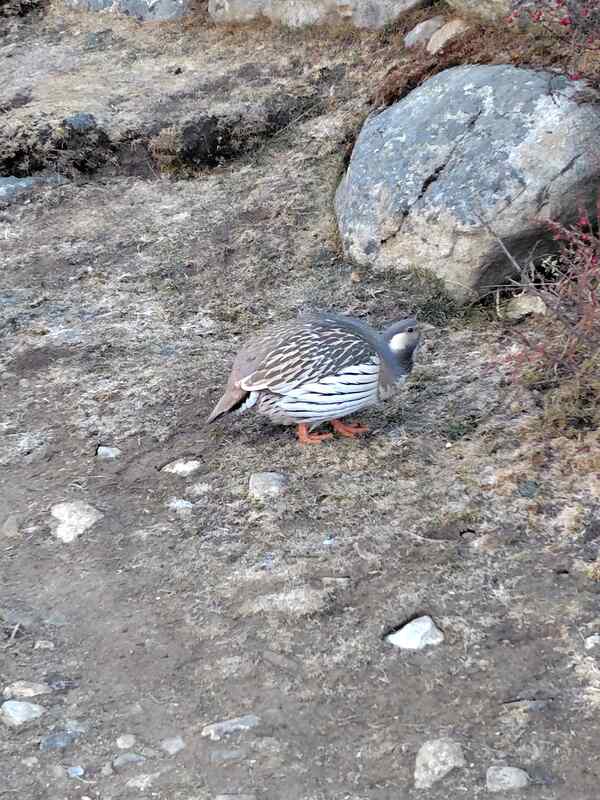 早朝、雷鳥に出会う。渓谷を下に見ながら、時々吊り橋を行ったり来たりしながら下っていく。小さな村がいくつも点在して、登山道は生活の道になっているよう。ナムチェで久しぶりにシャワーを浴びた。さっぱり。