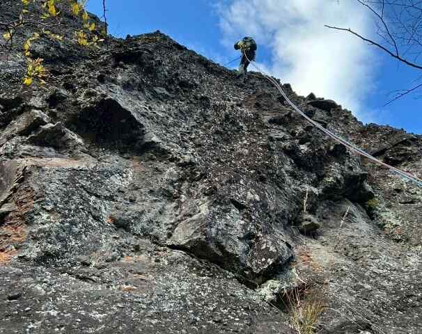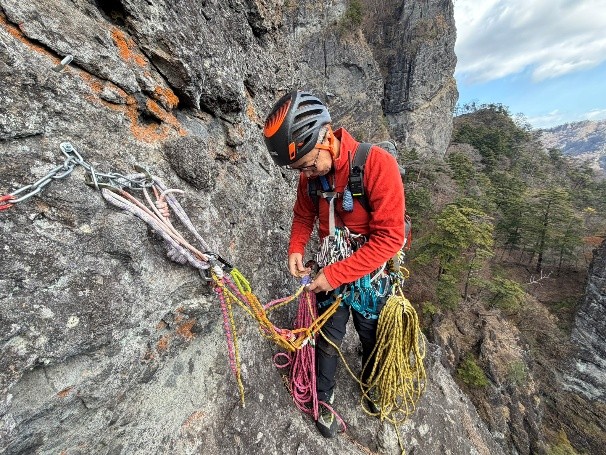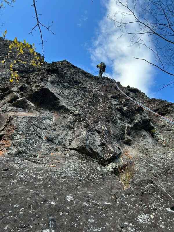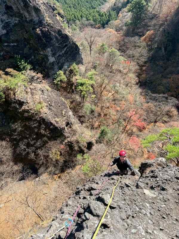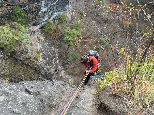 途中、ロープダウンの際にロープを岩肌に引っ掛けてしまうも、なんとか3回の懸垂で地上に戻る。