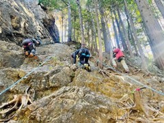 クライミングの場合は、事前に届け出をしていないと、ハイカーから通報が入った際に警察がすぐ注意に来られるようです。