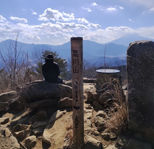 山頂には、ガイドを伴ったツアー客の人々がたくさんいた。この山にツアーで来るなんてとびっくり。そのうち、大勢の方達は大月駅方面に降りていった。